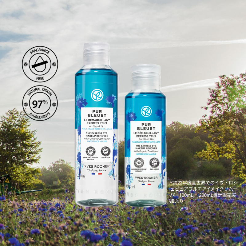 アイケアフラワーとも呼ばれる花ブルエ*¹とマカデミアナッツオイル*²を配合した、2層式の目もと用クレンジング。
