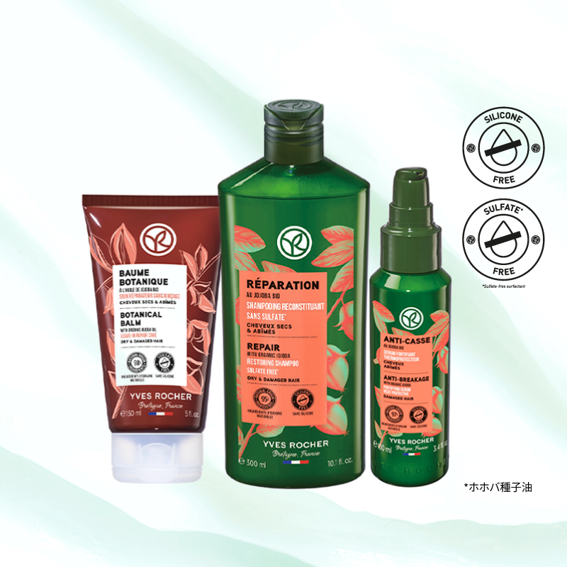絡まりや切れ毛をケアし、毛先までなめらかに整えます。