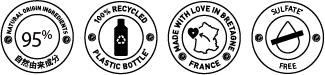 *1酢酸・ヨーロッパキイチゴ果実エキス *2酢酸 *3ヨーロッパキイチゴ果実エキス*4トウキンセンカ花エキス(コンディショナー・マスクのみに配合)
